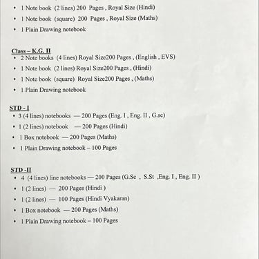 List of all books for all classes.